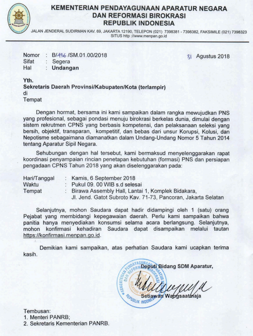 Related : Penetapan Kebutuhan (Formasi) Cpns Tahun 2018 Akan Disampaikan Dalam Rakor Hari Kamis 6 September 2018